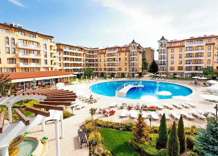 Hotelul Holiday Apartcomplex Royal Sun, situat la o distanță de 2.5 km de Plaja Chaika, oferă o piscină și o zonă de fitness. Având un restaurant un balcon francez, hotelul de apartamente se află, de asemenea, la o distanță de 7 km de locuri de divertisment precum Portul Dinevi.